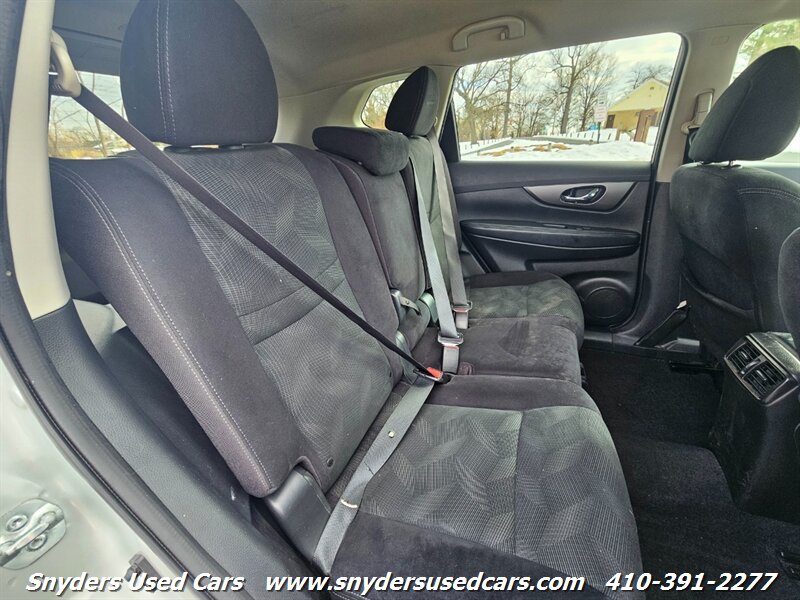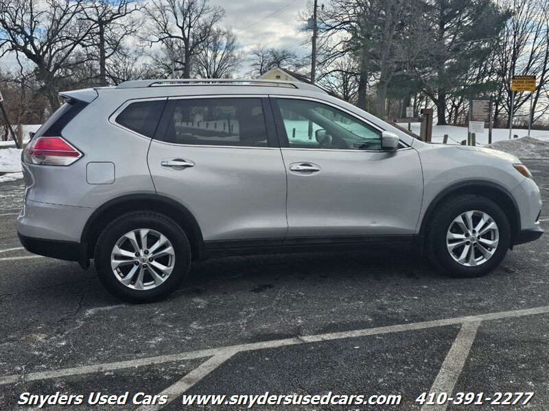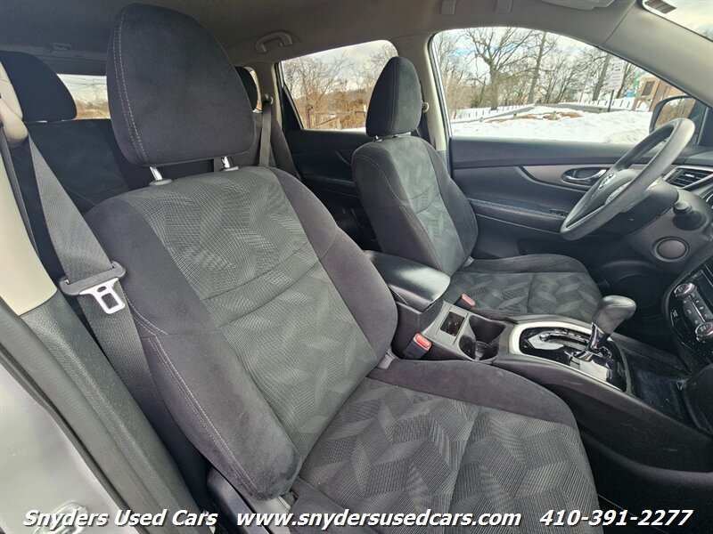 2015 Nissan Rogue SV — Silver exterior with Charcoal cloth interior. Powered by a 2.5L inline-4 producing 170 hp and 175 lb-ft of torque, paired with Nissan’s Xtronic CVT for smooth, efficient operation. EPA fuel economy is approximately 25 MPG city / 32 MPG highway. This Rogue SV delivers a comfortable, practical driving experience with a well-appointed factory feature set and versatile cargo solutions.