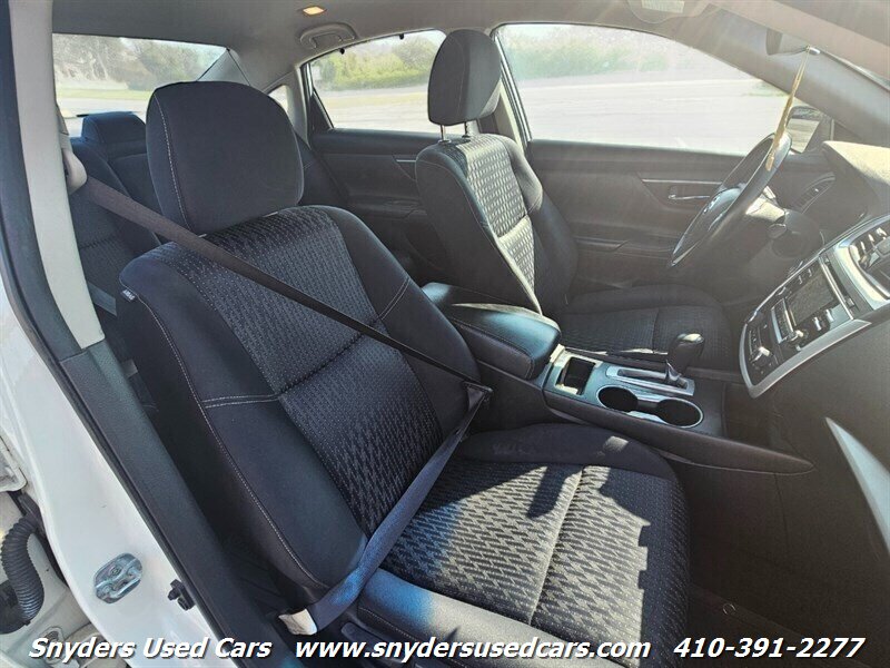 Presenting the 2016 Nissan Altima 2.5 SV, a reliable sedan designed to elevate your driving experience. Powered by a robust 2.5L I4 engine producing 182hp and 180ft. lbs. of torque, this vehicle seamlessly combines power with efficiency. The exterior gleams in a classic WHITE finish, complemented by a sophisticated Charcoal interior.